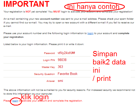 8. Simpan dan ingat2 Account Number dan Password anda, karena ini yang akan kita gunakan untuk proses yang lainnya.